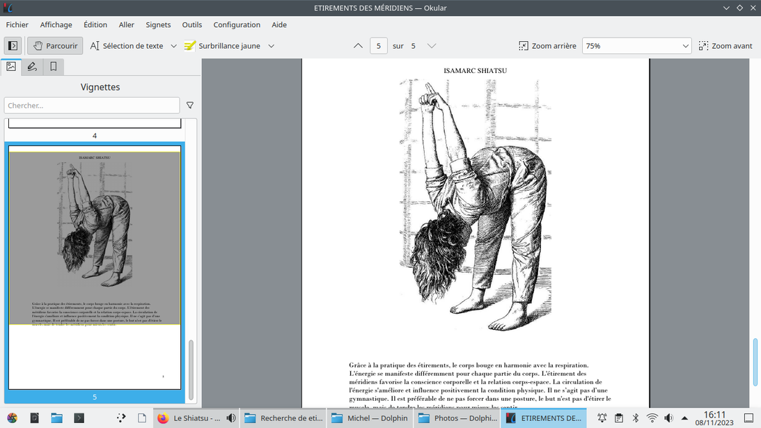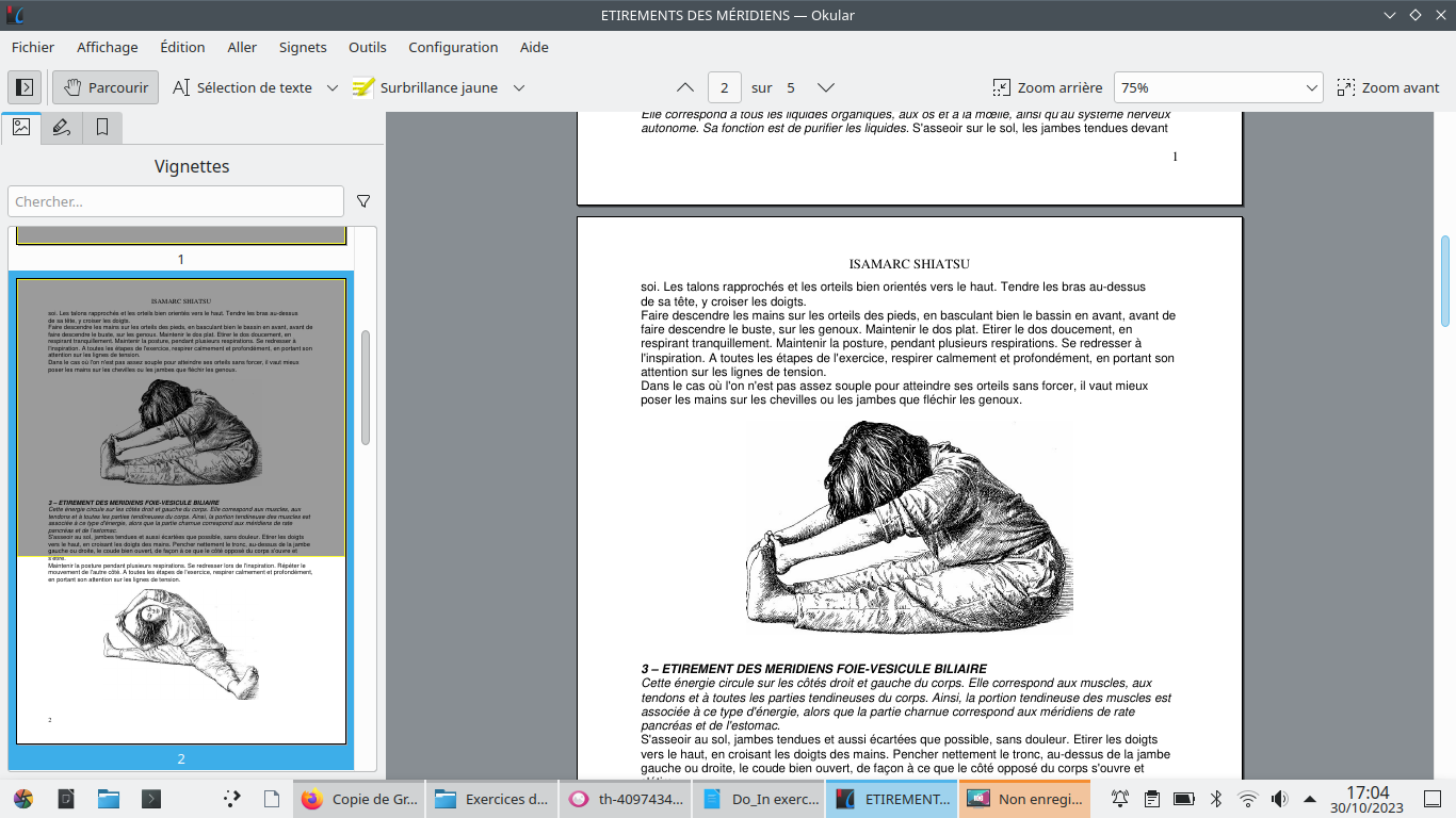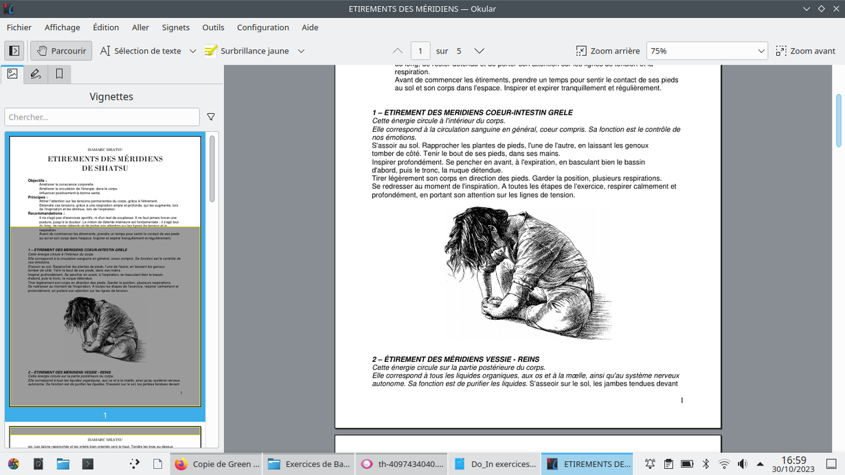 Les exercices de Do-In varient aussi selon les saisons, les douleurs ou maux du moment. Une pratique régulière participe au maintient d’un bon état de santé.